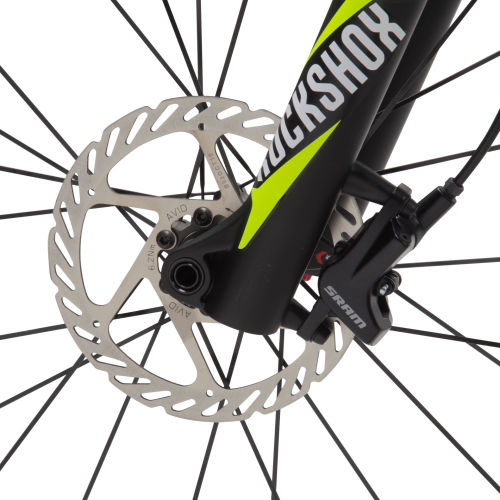 | Suspensions | Front suspension: ROCK SHOX REBA AIR 100 mm fork. Handlebar lockout with exclusive B'Twin ComboLock system (2 positions). 32 mm dampers for better rigidity and control. Axle: 15 mm. - Rear suspension: No rear suspension. |