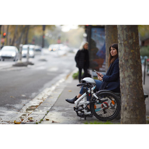 | Frame | 6061 T6 aluminium frame—lightweight, dynamic and sturdy.The very easy side-fold system with a lever helps to save up space: at home, at the office, in the boot of a car or in a camper... you'll forget your bike is even there.There is a mechanism to quickly lock the frame and stem so that you can keep the bike folded and transport it easily.In order to improve your bike's stability once folded, the frame is equipped with a bike stand under its base. |