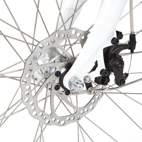 | Brakes | "We equipped your bike with Tektro aluminium brake levers for efficient, safe braking: they are lightweight and precise.Your bike also has mechanical disc callipers on the front wheel so that your brakes are powerful and progressive, even in the rain. |