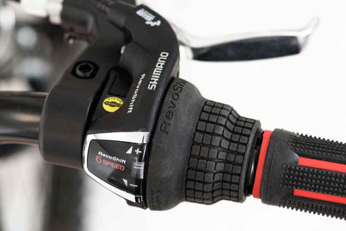 | Shifters | Shift Levers: Shimano Tourney ASLRS35LN, 6 speed Revoshift |