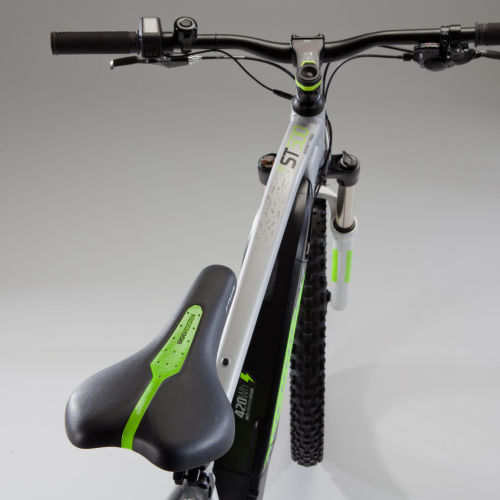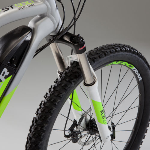 | Handlebar | With its adjustable stem, the E-ST500 controls are close at hand. The all-aluminium ROCKRIDER stem is 70 mm (size S), 80 mm (size M/L), or 90 mm (size XL) and can be raised using 5 adjustment intervals: + 0mm, + 7.5mm, + 15mm, + 22.5mm, + 30mm.In detail:- oversize 720mm-wide aluminium frame for even more control- soft touch ROCKRIDER SPORT grips for good grip and a comfortable feel |