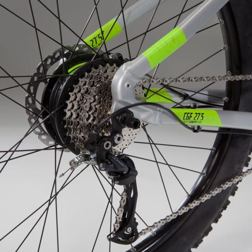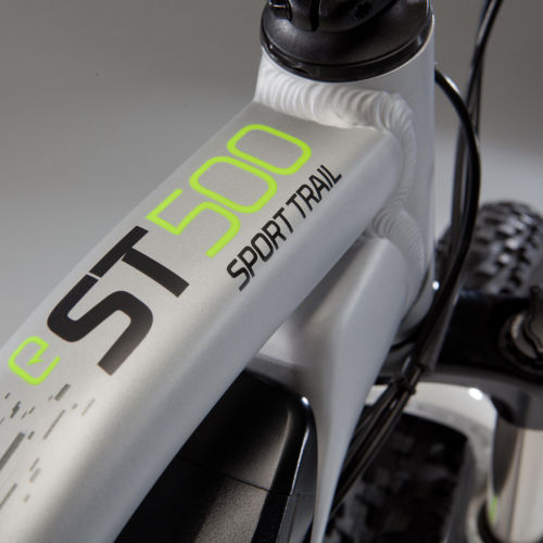 | Frame | The frame of the Rockrider E-ST500 EAMTB has been designed using 6061 aluminium with hydroformed tubes. Why? The battery sits snugly on the frame to improve the robustness of this electric mountain bike.The forged aluminium parts make it both compatible with the new 27.5"+ tyre format (wider than the 27.5") and easy to manoeuvre. We've kept the frame geometry low to make sure that the bike stays comfortable to ride. |