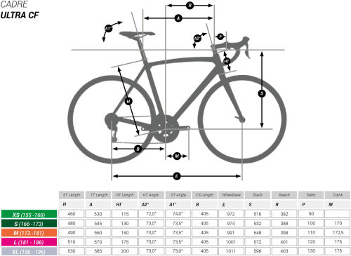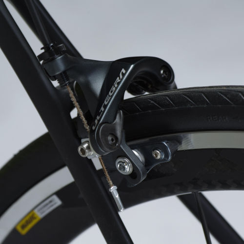 | Brakes | Front calliper: Shimano Ultegra R8000 Direct Mount, 2 symmetrical axles for more efficient braking control and greater braking power. Adjustable spring tension.Rear calliper: Shimano Ultegra R8000 (Mono pivot attachment). |